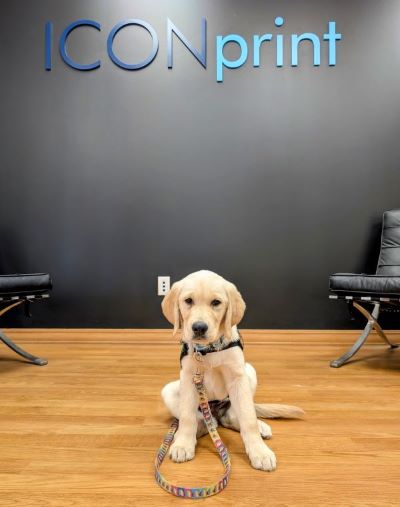 Little Linus, a 12-week-old lab/golden cross, went for a tour of Icon’s facility, posed for some photos with the staff, and approved the first run of the calendar himself.