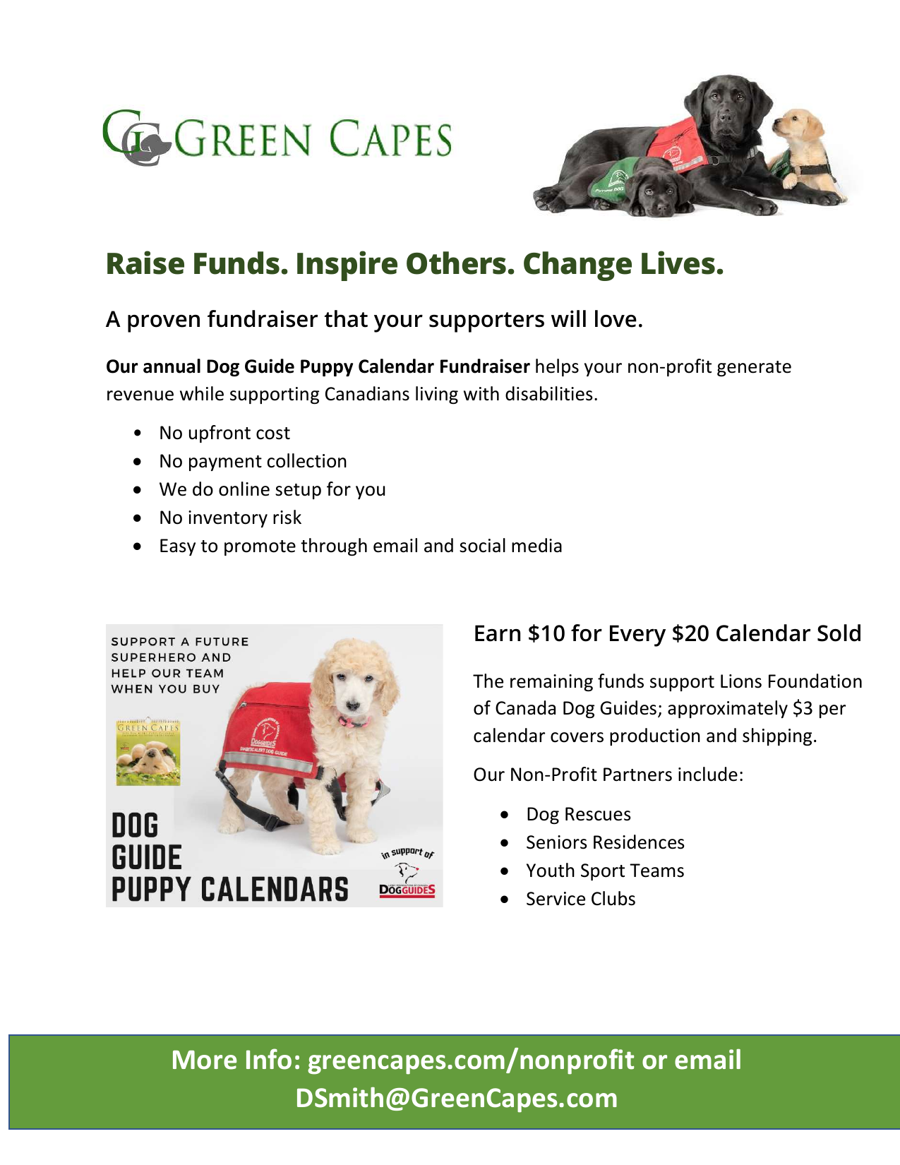 Would your non profit like to raise money and support the Lions Foundation of Canada Dog Guides in their mission to provide service dogs free of charge to Canadians with medical or physical disabilities? We have a proven fundraiser you will love.