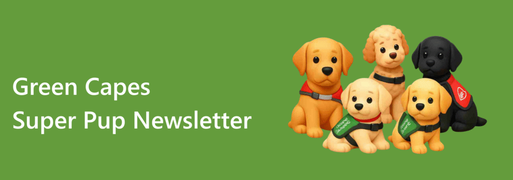 Did you know that there are fewer than 25 full-time members at Green Capes? Anyone is welcome to join, from anywhere in Canada! Most members are past or present puppy raisers, graduates and supporters, and we all work together to help make today’s puppies tomorrow’s Super Heroes!